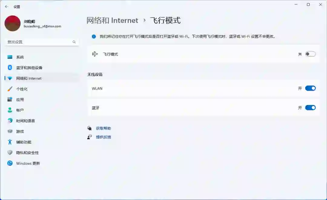 最后,在 22H2 中的飞行模式也得到了一定程度的改进,新版飞行模式可以记住 Wi-Fi 以及蓝牙设置的打开状态,在打开飞行模式的开关以后,Wi-Fi 以及蓝牙的状态不会发生改变。。
