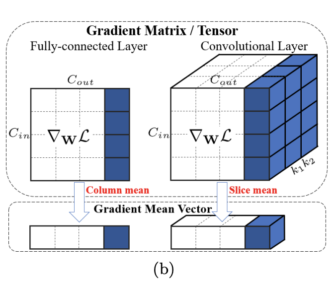 定义一些基础符号,使用 统一表示全连接层的权值矩阵 和卷积层的权值张量, 为权值矩阵 的第 列, 为目标函数, 和 为 对 和 的梯度, 与 的大小一样。定义 为输入特征图,则 为输出特征图, 为 位单位向量(unit vector), 为单位矩阵(identity matrix)。