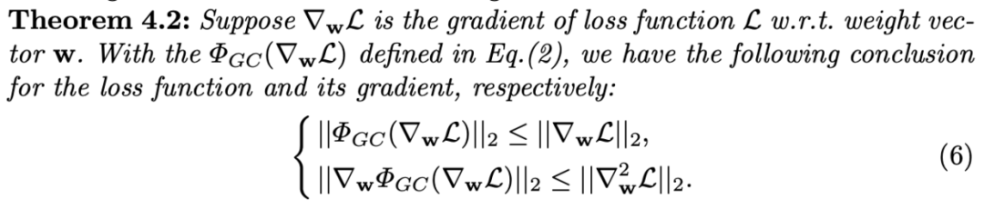 前面提到BN和WS都间接地对权值梯度进行约束,使损失函数满足Lipschitz属性, 和 ( 的Hessian矩阵)都有上界。GC直接对梯度进行约束,也有类似于BN和WS的属性,对比原损失函数满足以下定理: