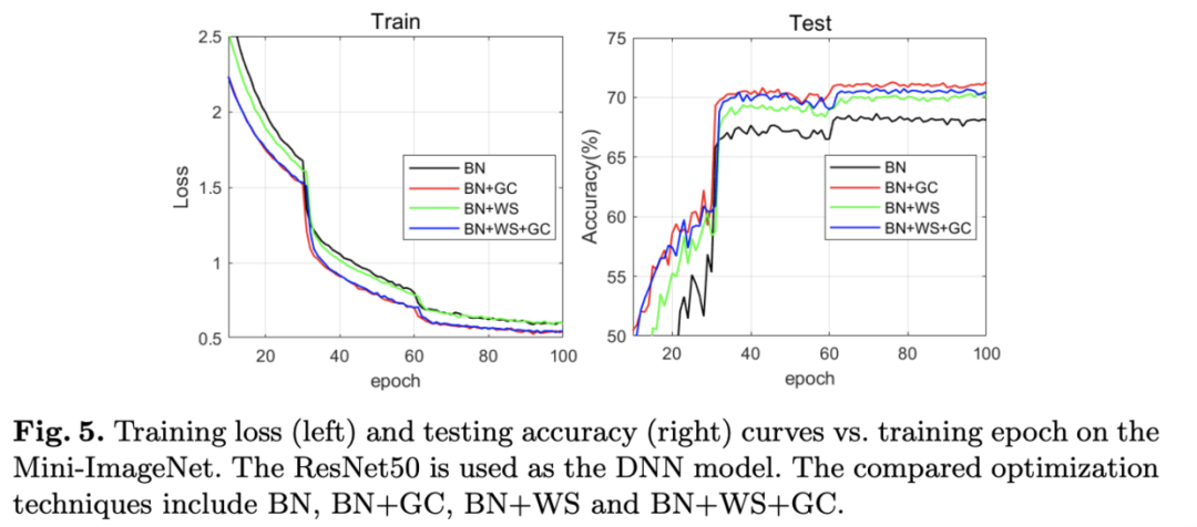 相关证明可以看原文附录,定理4.2表明GC比原函数有更好的Lipschitzness,更好的Lipschitzness意味着梯度更加稳定,优化过程也更加平滑,能够类似于BN和WS那样加速训练过程。