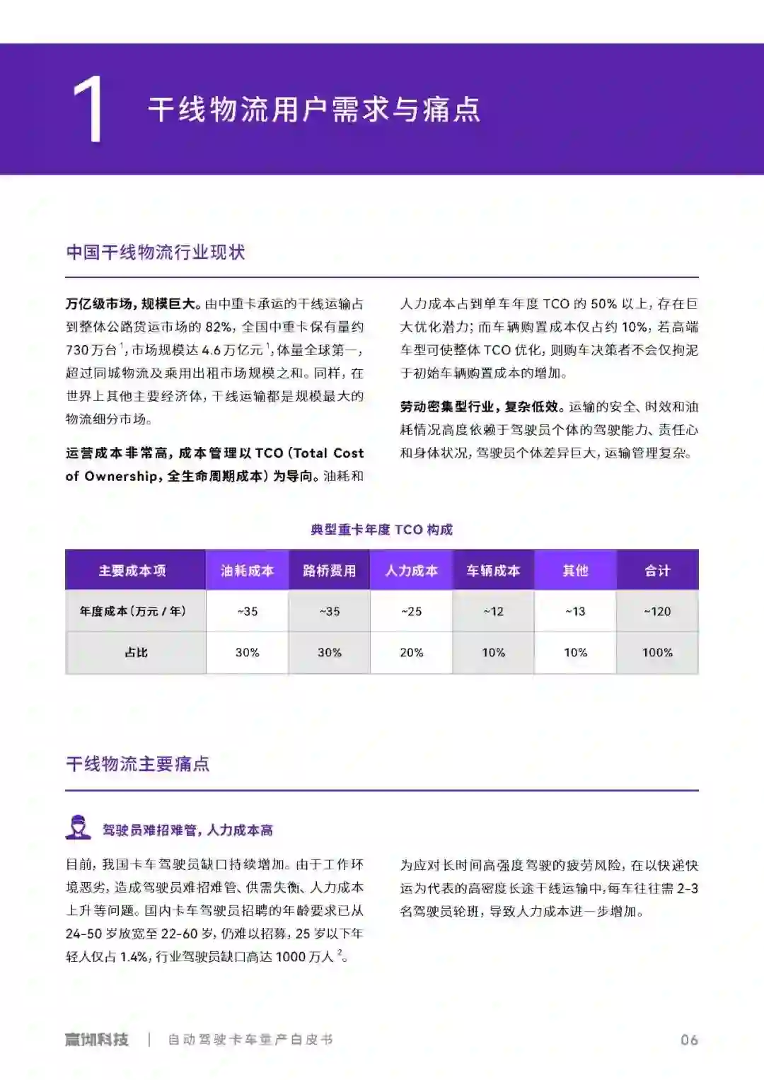 卡车自动驾驶的技术创新和工程极致,来源于 对卡车物理特性、苛刻安全要求、量产一致性、 成本压力、运输时效和安全员特点等多重挑战 的深度认知和极致追求。这是技术的真正源动 力,对自动驾驶的算法演进、架构创新和工程实 践提出了更高的要求。