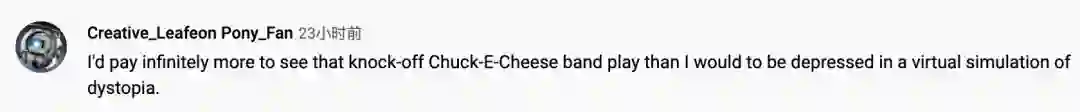 有网友表示,「我宁愿花更多的钱去看那个山寨版的Chuck-E-Cheese乐队演出,也不愿意在一个虚拟的反乌托邦中沮丧。」