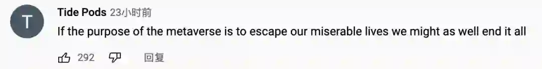 「这则广告让我意识到我的生活是多么美好。我不需要一个可以逃避现实的虚拟世界来获得快乐。谢谢metaverse!」