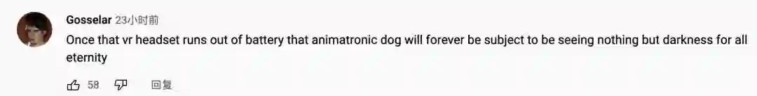 正如网友所提到的,一旦VR显电池耗尽,电子狗将永远只能看到的是黑暗。