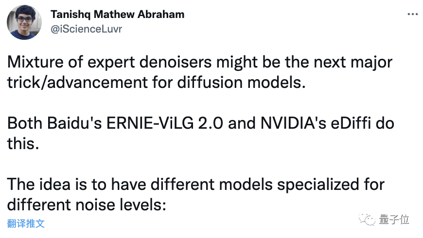 一位StabilityAI员工认为,这种方法可能是扩散模型的下一大突破/进步。因为不止英伟达的这个eDiffi,还有百度的文心ERNIE-ViLG 2.0也是这么做的。