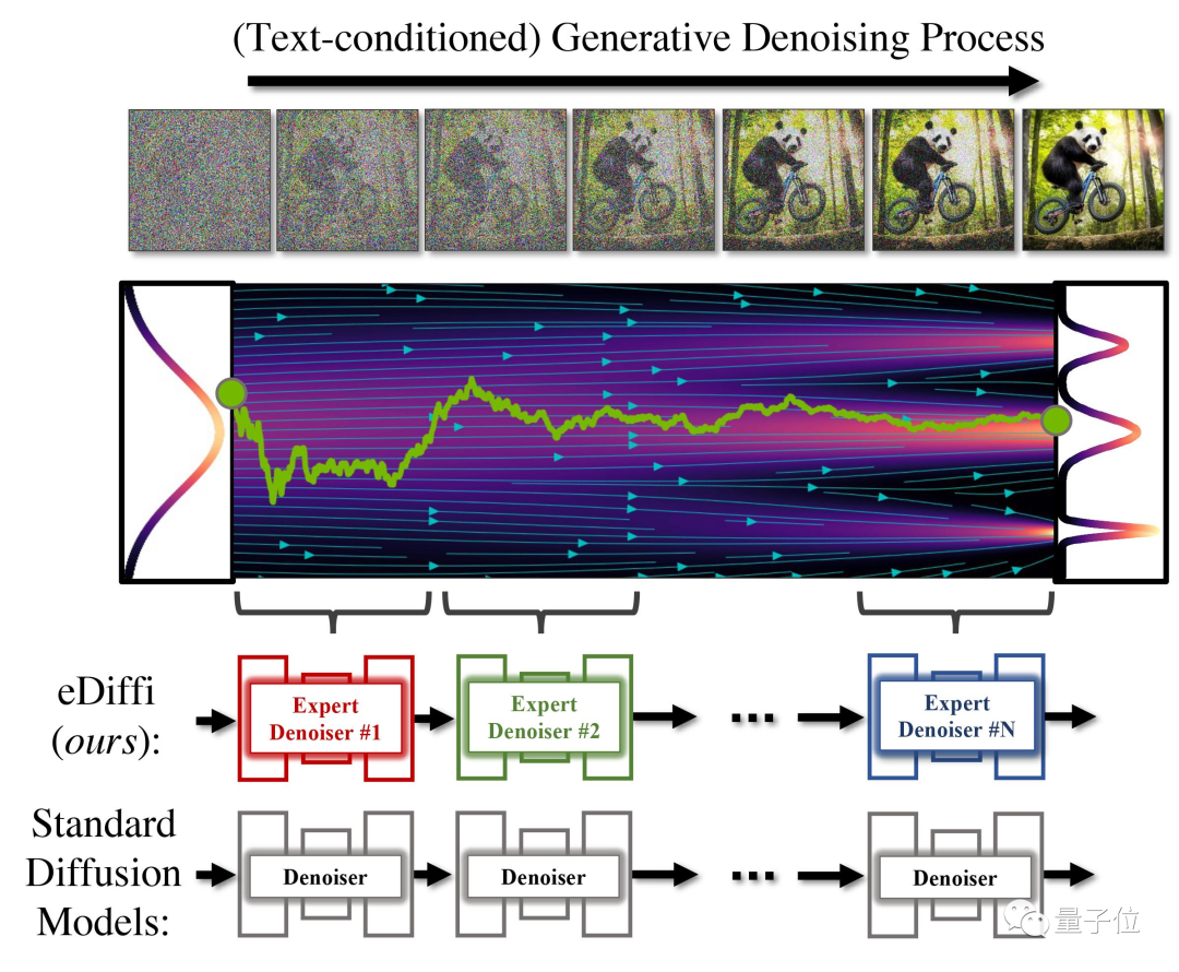 而在作者的这个框架中,他们训练了一组专家去噪器,专门用于在生成过程的不同步骤进行去噪。
