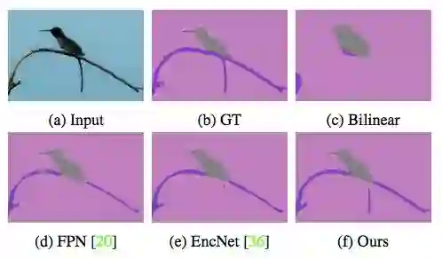 图 6:以 ResNet-50 作为主干网络且使用 Encoding Head 时,不同上采样模块的可视化结果对比。