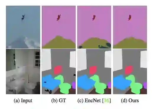 图 7:本文方法 (ResNet-101) 的可视化结果。第一行来自 Pascal Context 验证集,第二行来自 ADE20K 验证集。