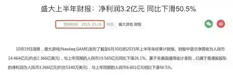 水深火热中的盛大游戏,开始遭遇高管离职,其业绩跌入谷底。2015年上半年,其营收为14.46亿元,同比下滑26.1%,净利润仅为3.266亿元,同比下滑50.5%。