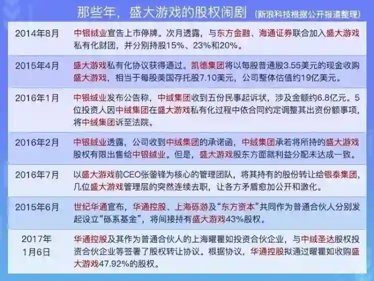 自2014年宣布私有化并筹备回A起,盛大游戏先后经历了7次易主,各方财团涌入,它深陷股权乱局之中。
