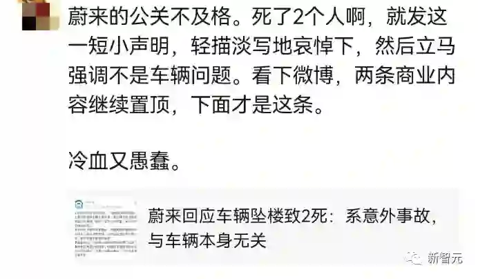 其实从蔚来官方发出的回应来看,从它尽力撇清意外同车辆本身问题的措辞上,多多少少是有些「吃相难看」。