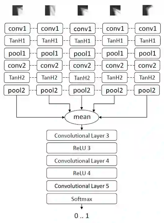 图1 本文所提出的的网络架构有5个分支,输入为5个图像块,输出为用于选择正确深度值的相似度得分。
