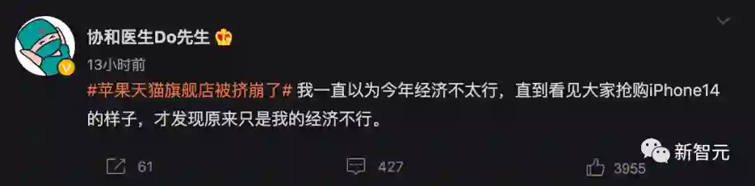 在新款iPhone 14发布后不久,她发了一个动态,嘲了一下这款「新」手机。