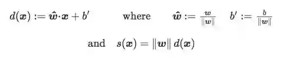这个原始得分其实是x关于C的符号距离(signed distance,带正负号):