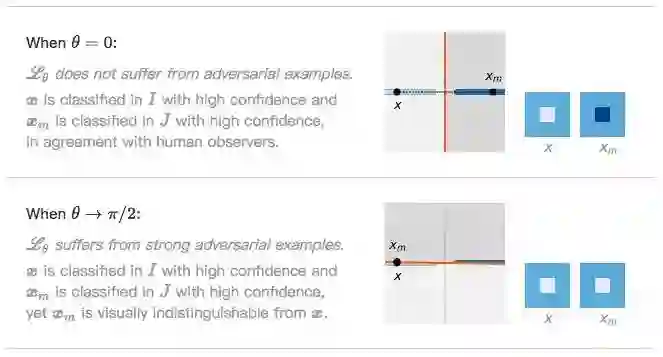 当θ→π/2时,Lθ很明显受到对抗样本影响。x被分类为I的置信度很高,xm被分类为J的置信度也很高,但它们在视觉上几乎不可区分。