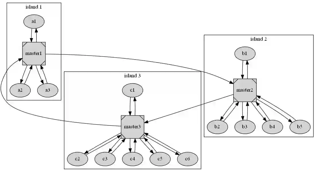 基于ISLAND的并行化思路, 在于island之间以一定的机制动态发送和接受结果, 保障搜索方向的有效性和利用多样性避免陷入Local Minima。