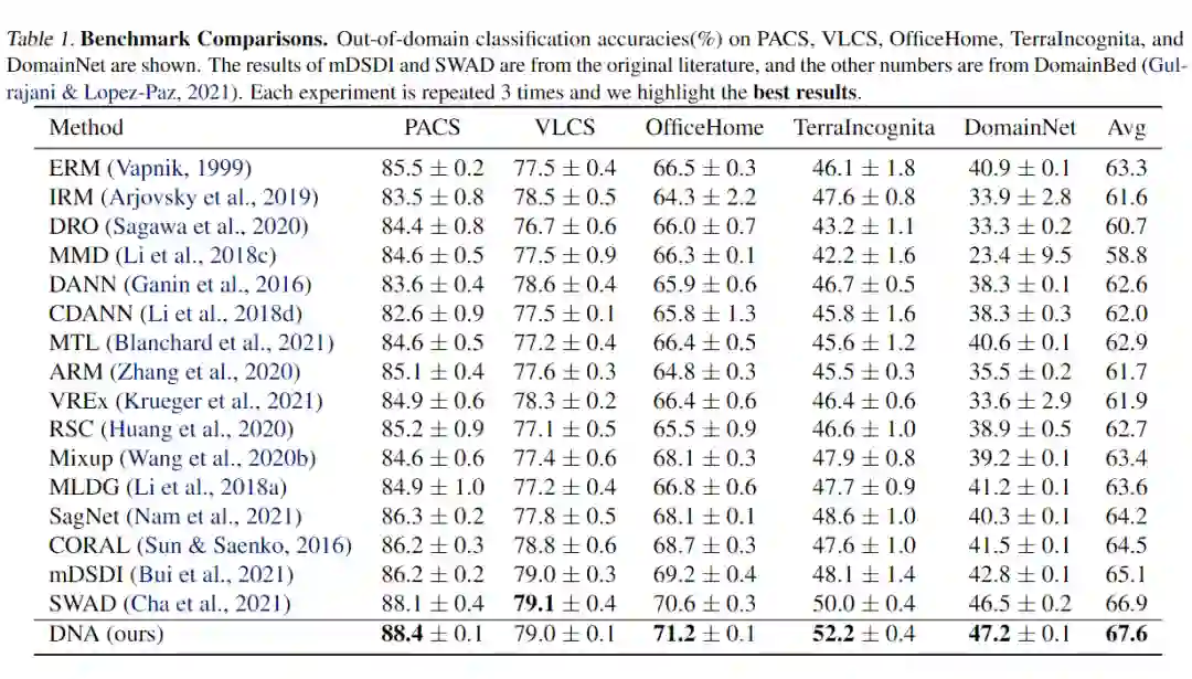 理论上,本文首先引入一个剪枝的 jensen - shannon(PJS)损失,证明了 ρ 集合(由 quasi-posteriorρ 加权的平均分类器)在目标域上的 PJS 损失受 Gibbs 分类器的在源域的平均平方根风险的限制,即前者被后者 bound。通过对分类器集合的多样性进行约束,得到了一个更紧密的 DG bound。根据这个 bound,本文提出了 diversified neural averaging(DNA)method。