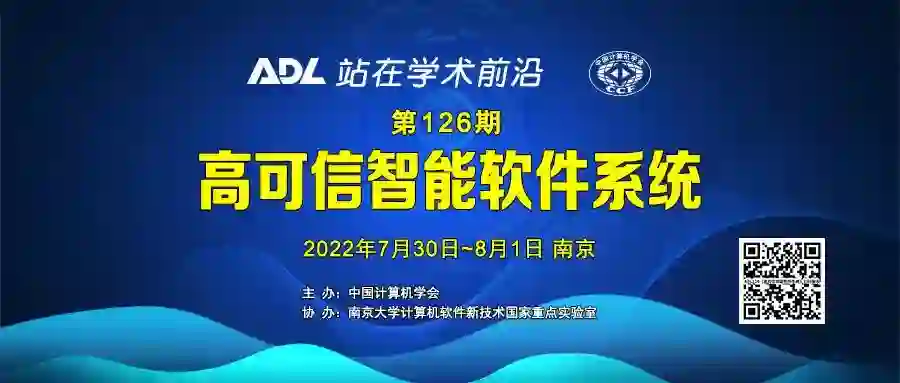 本期ADL主题《高可信智能软件系统》,由CCF常务理事、系统软件专委主任北京大学金芝教授和南京大学马晓星教授担任学术主任,邀请到陈谋(教授,南京航空航天大学)、孙军(教授, Singapore Management University)、马雷(副教授, University of Alberta, Canada)、陈俊洁(副教授,天津大学)、金鑫(研究员,北京大学)、郝建业(副教授,天津大学)、John Zhang(华为系统工程首席专家,华为)和David Dai(华为系统架构首席专家,华为)8位专家做专题讲座。