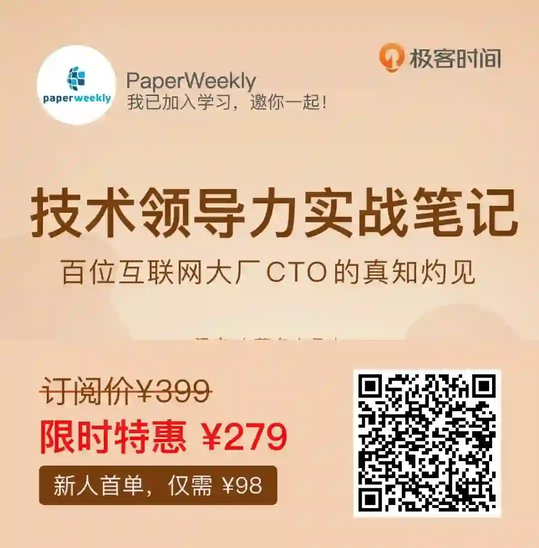 如果你也有类似的困惑,推荐我的“通勤读物”《技术领导力实战笔记》专栏给你,没有人生来就会当领导,每个坐在这个位置上的人,都是摸着石头过河。这个专栏就是阿里、腾讯、京东、AWS 等上百家知名互联网公司的技术领导者、CEO 们的成功经验与血泪史。