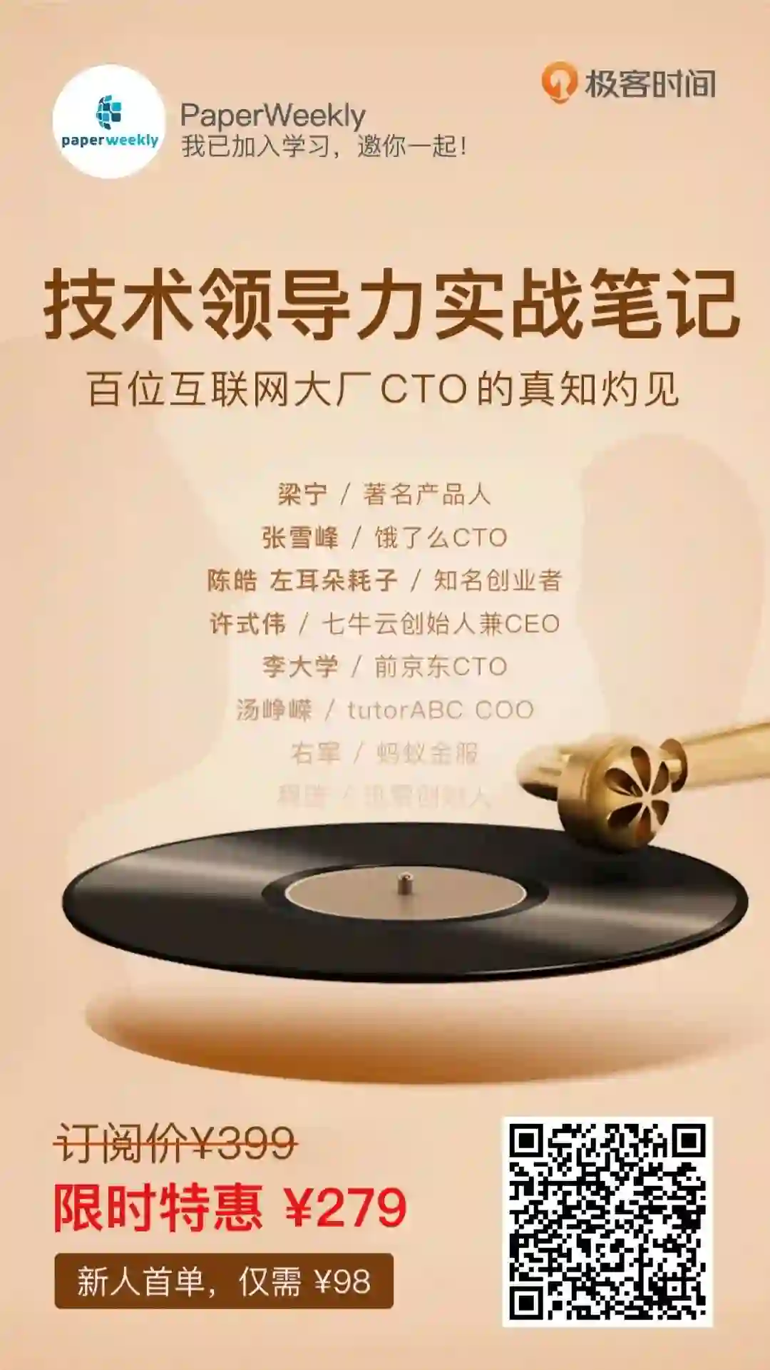 一顿饭钱,就能得到 100 位一线 CTO 的管理秘籍,绝对是今年的最佳理财产品,比买基金赚多了,不说你也懂。