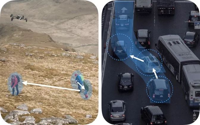 在搜救任务中,志愿者之间潜在的领导和跟随结构的例子(左图),以及车辆在交通中相互跟随的例子(右图)。