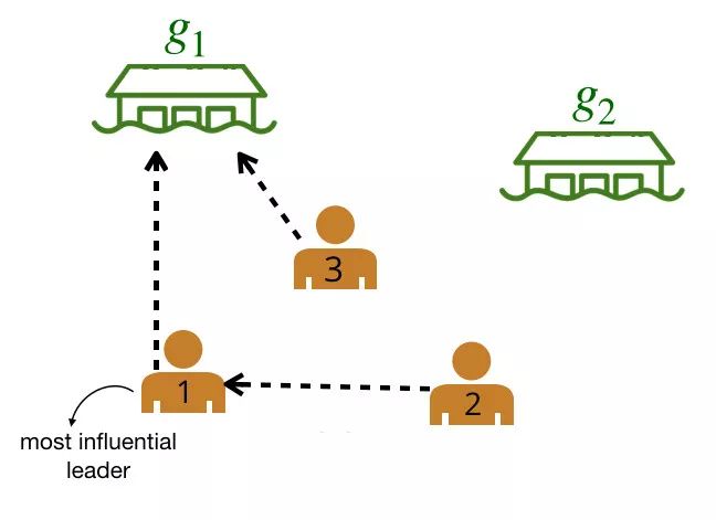 领导者-追随者图(LFG)。我们可以使用 LFG 来确定最有影响力的领导者,即拥有最多追随者的智能体。