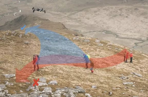 然而,要影响人群是具有挑战性的。例如,想象一下在一个志愿搜救任务中,无人机学习关于目标位置的最新信息(如下面的蓝色标记所示)。假设没有直接的通讯方式,无人机应该如何带领志愿者前往那个地点?
