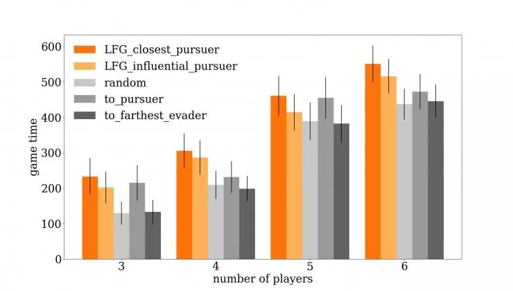 使用领导者-追随者图 (LFG)的两种策略比其他基线方法成功地延长了游戏时间。