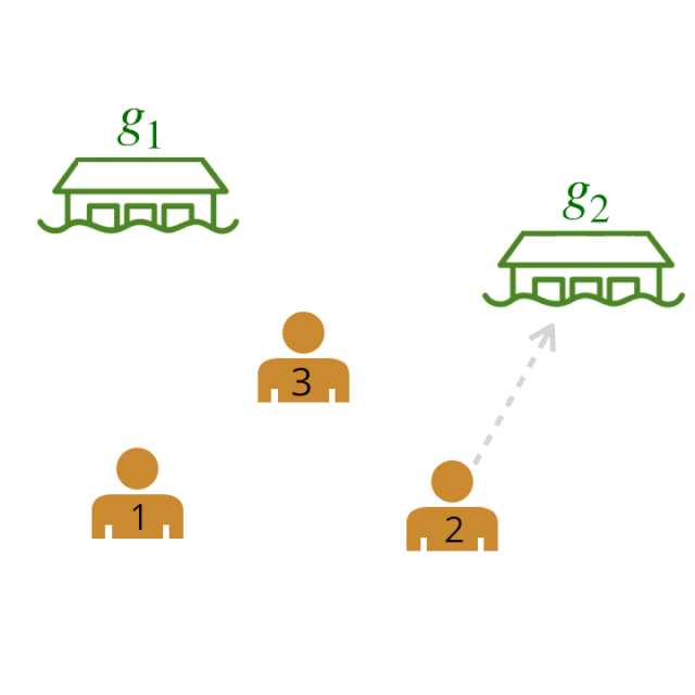 我们将搜救任务抽象为一个游戏,其中目标代表潜在的幸存者位置。在下面的例子中,参与者被要求互相领导和跟随,以便集体决定要达成的目标。与人有关的数据通常充满噪音,很难大规模收集。为了弥补这个缺点,我们用模拟的人类数据扩充了我们的数据集。然后,我们将这些数据输入神经网络模块。这些模块经过训练,可以预测前导关系和后导关系。这为我们提供了一个模型,可以评估每个智能体以及目标成为智能体的领导者的可能性。