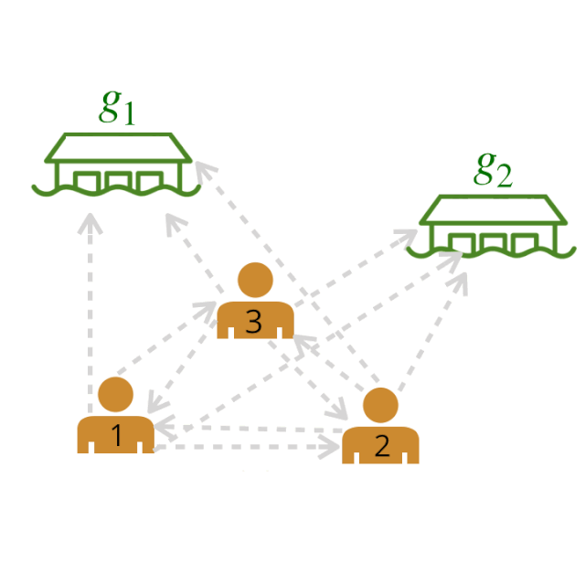 与为群体中的每个个体建模不同,我们的核心思想是关注个体之间的建模关系。当在群体中互动时,我们不再孤立地行动,而是根据他人的行动有条件地行动。这些依赖关系提供了一种结构,我们可以使用这种结构来形成对他人的期望,并据此行事。在更大的范围内,这允许我们发展出规范、惯例,甚至文化。这些依赖关系对机器人很有用。因为它们提供了丰富的信息源,可以帮助机器人建模和预测人类行为。我们称这些依赖关系为潜在结构。