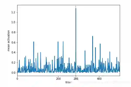 接下来我们来检验一下,是不是由这张图来确定的图片的分类。首先记住,这张图是最后一层的第 286 个滤波器。如何检验呢?我们只需要将这张图片输入进网络,并绘制第 40 层的平均激活响应,如下图。