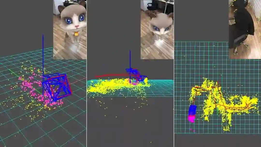 跨平台的轻量级AR/VR引擎:不同于前几项SLAM底层技术,跨平台的轻量级AR/VR引擎将后端SLAM、三维重建和前端的三维绘制、渲染整合,集成了AR/VR引擎。最终呈现给用户的是三维绘制的虚拟场景和真实世界的融合后的效果。具有跨平台、库体积小且支持多种光照和材质模型,以及虚拟物体的遮挡、阴影投射、Avatar表情驱动等特点。