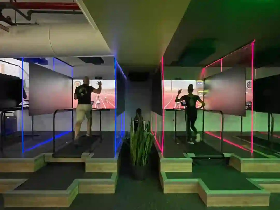 据说,这些跑步机都是由VR技术驱动的,可以让你体验在元宇宙里跑步的那种身临其境的感觉。