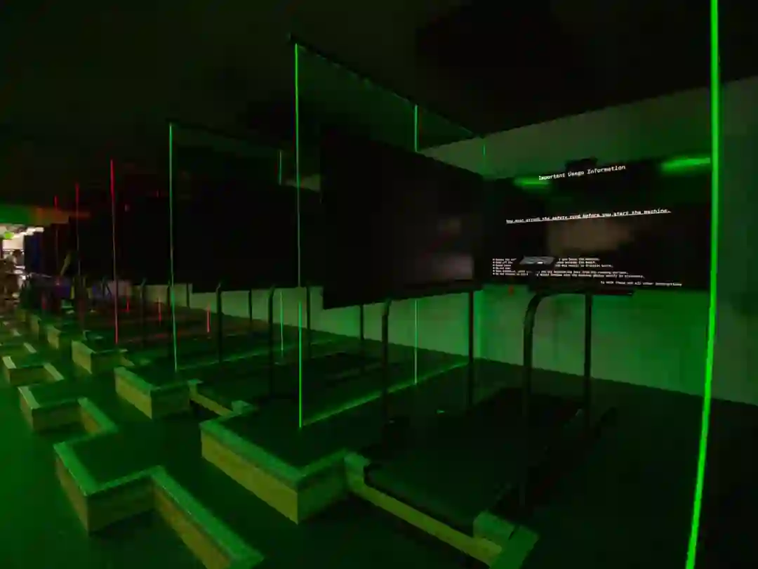 为了给你更身临其境的跑步体验,每台跑步机都面对一个大显示器,并用高高的黑色屏障与相邻的设备隔开,以此创造一种「光流的错觉」。