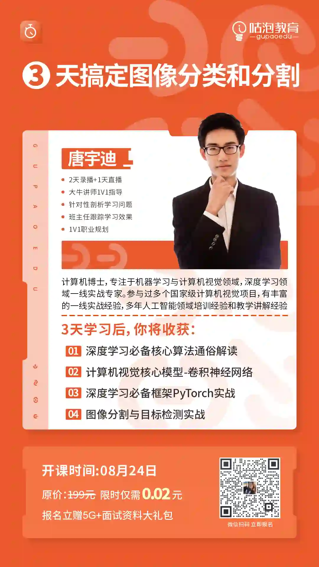 那么为了让大家更好地掌握 图像分类和分割 ,邀请人工智能实战专家唐宇迪博士。专为深度学习的同学开设了