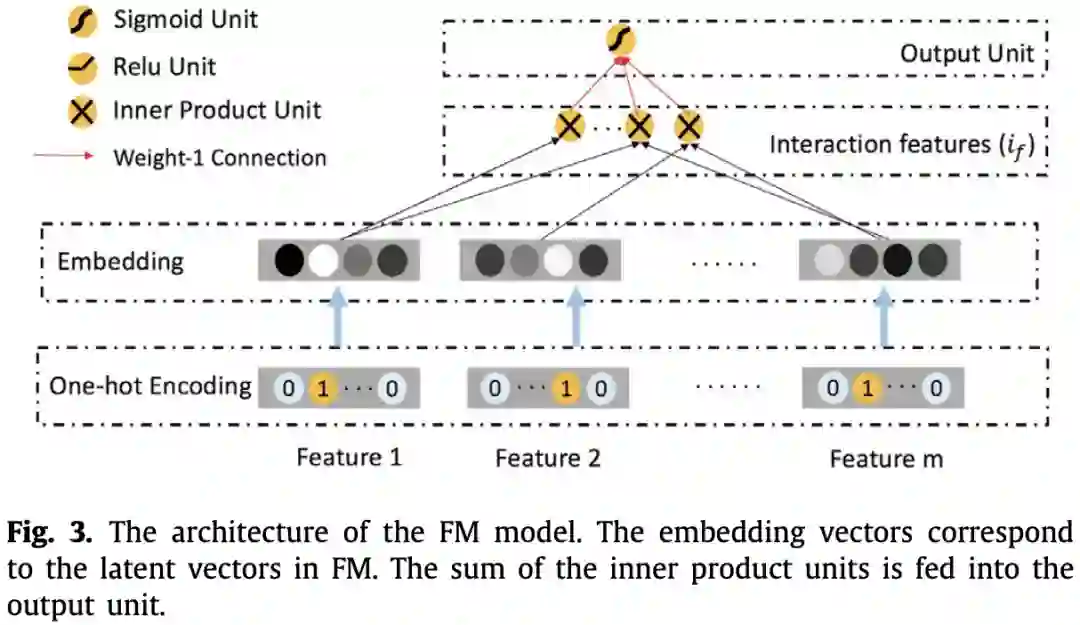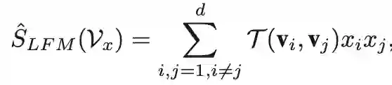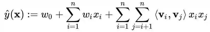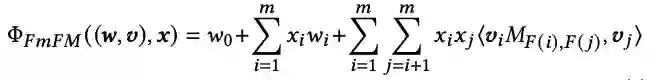 LR模型假设特征之间是相互独立的,忽略了特征之间的交互,而FM则是针对这一点进行改进。FM模型融入了二阶特征交互,对于每两个特征 和 的交互组合,用一个参数 来作为权重。