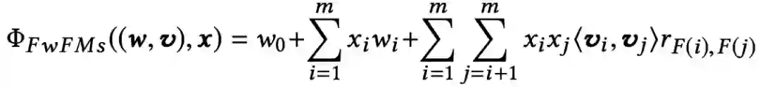 FFM对不同的交互方式可以精确的建模,取得很好的效果。但是,FFM中的参数个数跟特征数和域数的乘积同阶,在实际应用中开销较大。FwFM提出带权重的FFM,对不同域中不同的特征交互建模时更加高效。