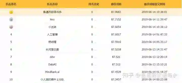 那么队伍成员分数都很一般就没有翻盘机会了吗?并不一定,方法是寻找有差异的队友,比如你是树模型,你就可以找做规则的童鞋,或者是做nn的。毕竟lgb+规则能提升近1个点,也就是从86到87,87到88。