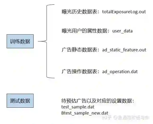 这次比赛完全不同于17和18年的CTR方面问题。本次竞赛将提供历史n天的曝光广告的数据(特定流量上采样), 包括对应每次曝光的流量特征(用户属性和广告位等时空信息)以及曝光广告的设置和竞争力分数;测试集是新的一批广告设置(有完全新的广告id, 也有老的广告id修改了设置), 要求预估这批广告的日曝光。