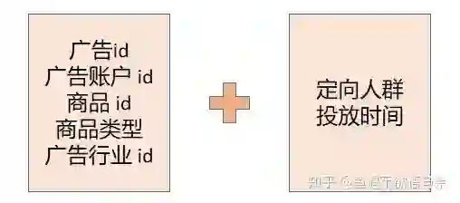 第二步:原始特征。看看有什么可以用的特征,主要是比较稳定,不会有太多问题的特征,所以我给出的原始训练特征有广告id,素材大小,广告行业id,商品类型,商品id,广告账户id,恰好测试集都包含这些特征,然后构造好的广告id和标签数据与广告静态数据经行合并。这样特征就对应上了。