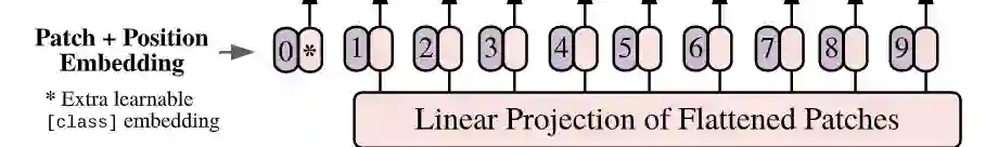 如上图所示1,编号有0-9的紫色框表示各个位置的position embedding,而紫色框旁边的粉色框则是经过linear projection之后的flattened patch向量。文中采用将position embedding(即图中紫色框)和patch embedding(即图中粉色框)相加的方式结合position信息。