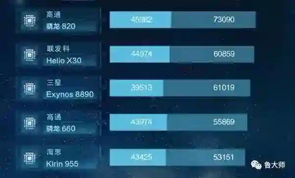 除了手机性能榜,鲁大师近日还公布了2017年度的安卓智能手机芯片排行榜TOP10,华为麒麟970成功压制高通骁龙835拔得头筹。