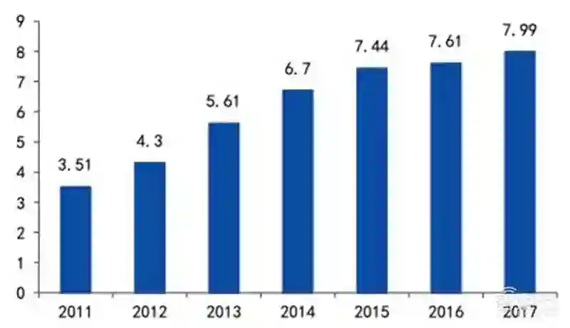 随着需求的增加和技术的进步,中国光刻胶产量也在逐年增加。 据统计资料显示,2017 年中国光刻胶行业产量达到 7.56 万吨,较 2016 年增加 0.29 万吨,其中,中国本土光刻胶产量为 4.41 万吨,与 7.99 万吨的需求量差异较大,说明我国供给能力还需提升。 得益于我国平面显示和半导体产业的发展,预计我国光刻胶市场需求 。