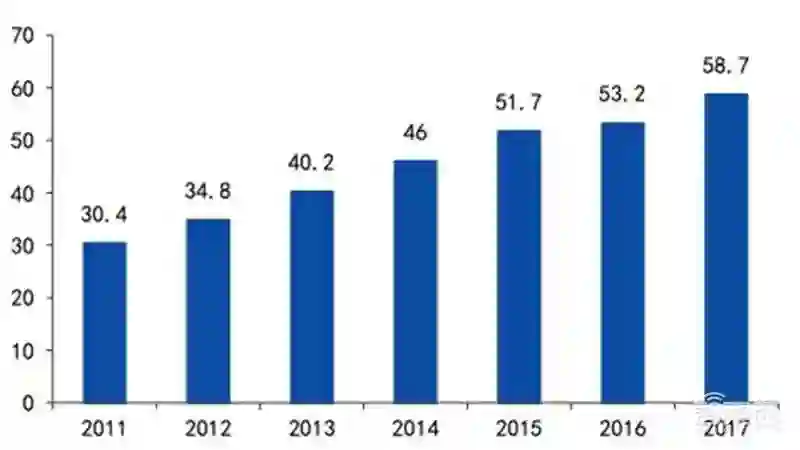 据集邦咨询光电研究中心的数据显示,虽然近三年里国际 LCD 厂商面板的出货量较低,但 LCD 整体出货面积变大,这种现象可以通过大屏显示的市场扩增得到验证。LCD 面板的平均面积已经由 2007 年的 0.34 平方米/片增长至 2016 年的 0.52 平方米/片,年复合增长 4.7%, 40 英寸以上 LCD 面板出货量占比从之前的 42.93%涨至77.31%。 预计至 2019 年, 65 英寸及以上尺寸的面板出货量将以 17%的年复合增长率大幅增长。 未来几年厂商将继续推动面板的大尺寸化,尤其是 60 英寸以上面板出货量与出货面积将增加, LCD 行业仍有较大的增长空间。中国产业信息网预测,未来几年全球 LCD 光刻胶的需求量增长速度为 4%~6%。