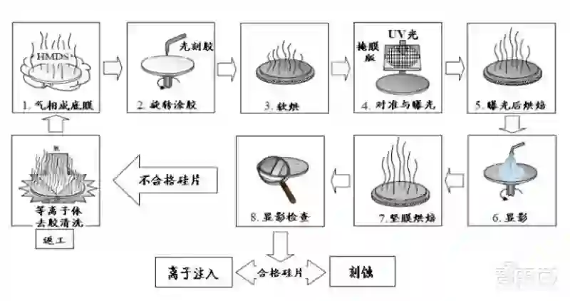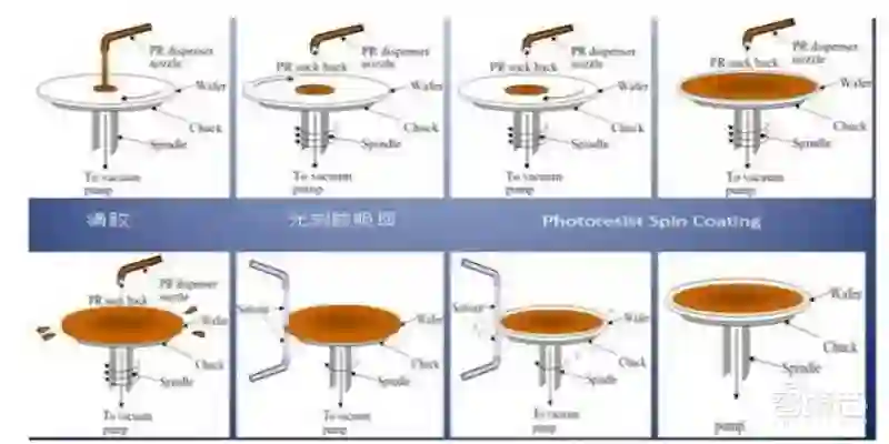 ▲IC 光刻工艺预烘和底胶涂覆示意图