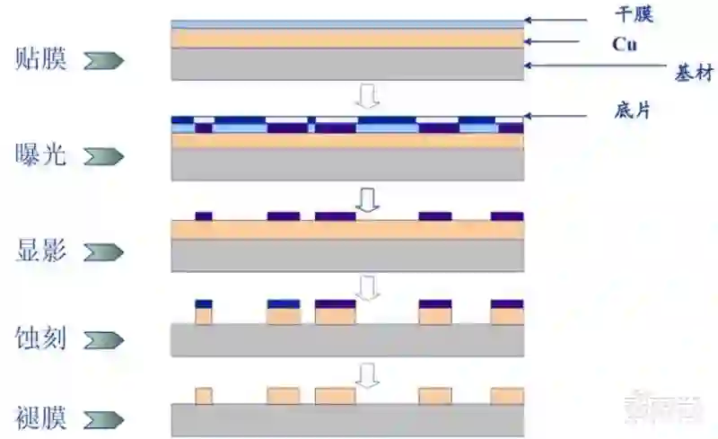 PCB (Printed circuit board)是印制线路板的简称,俗称电路板,是电子产品的基本组成部分之一, PCB 市场是当代电子元件业最活跃的产业,被誉为“电子产品之母”。 PCB 板的加工制造过程涉及图形转移,即把生产菲林上设计的图像转移到衬底板上, 此时会使用到光刻胶。基本过程如下:首先在衬底表面形成一层光刻胶薄膜,然后紫外光通过掩膜板照射到光刻胶薄膜上,曝光区域发生一系列的化学反应,再通过显影的作用将曝光区域(正性)或未曝光区域(负性)溶解并去除,最后经过固化、蚀刻、退膜等一系列过程将图形转移至衬底。