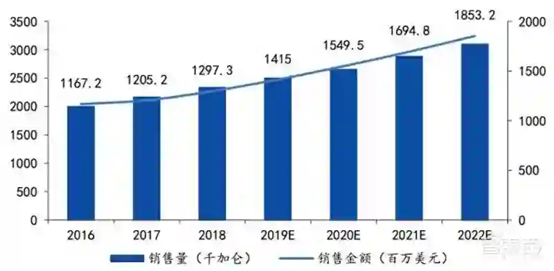 全球光刻胶市场扩增,对光刻胶的总需求不断提升。在下游产业的带动下,预计国际光刻胶市场规模在 2022 年可能突破 100 亿美元。