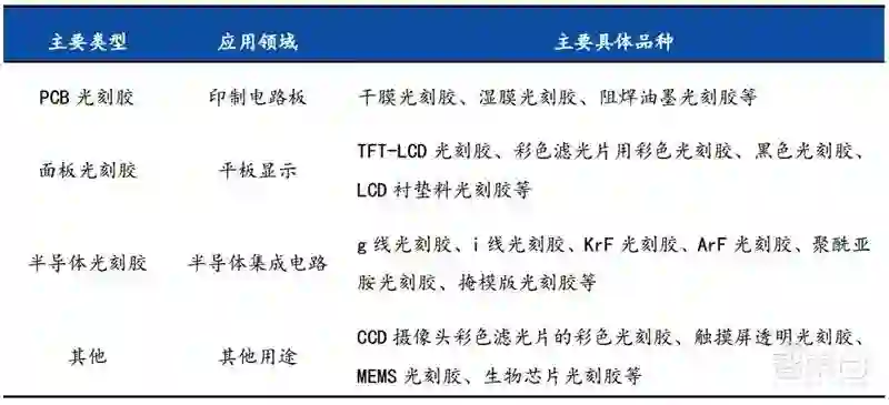 随着科技的发展,现代电子电路越发向细小化集成化方向发展,随着对线宽的不同要求,光刻胶的配方有所不同,但应用相同,都是用于微细图形的加工, 按照不同的下游行业主要分为 PCB 光刻胶、 面板光刻胶、 半导体光刻胶。