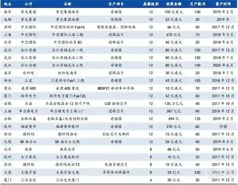 目前大陆晶圆制造领域的情况为 12 寸晶圆厂集中扩建, 8 寸厂订单满载, 6 寸厂面临转型。根据国际半导体协会(SEMI)所发布的近两年全球晶圆厂预测报告显示,2017 年到 2020 年的四年间,大陆预计将有 26 座新晶圆厂投产,整个投资计划占全球新建晶圆厂的 42%,成为全球新建投资最大的地区。整体来看目前大陆已投产12 寸线月产能达 46 万片(含外资、存储器),全球占比约 9%;已投产 8 寸线月产能达 66 万片(含外资),全球占比达 12.8%。 2016-2020 年新增 12 寸线规划产能在 100-110 万片/月。
