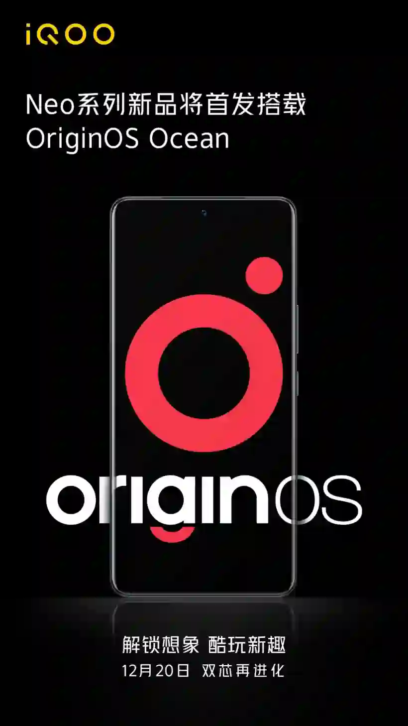 vivo 昨晚发布完全新升级的原系统 OriginOS Ocean 后,旗下品牌 iQOO 宣布将于 12 月 20 日推出 iQOO Neo 系列新机,首发搭载原系统 OriginOS Ocean。据此前爆料,20 日新品可能会是 iQOO Neo5s 和 iQOO Neo5 SE 两款产品。原系统 OriginOS Ocean 适配计划表示,vivo 和 iQOO 的多款新机将在 12 月 30 日获得更新,其余机型将在 2022 年 4 月之内陆续更新完毕。